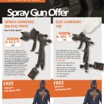 Shop Bodyshop Direct has a special offer on a choice of Walcom spray guns. It is giving away a full spray suit with a choice of two models – the Genesi Carbonio 360 Evo Halo or the Eco Carbonio 190. Both come with a free Walcom full spray suit.